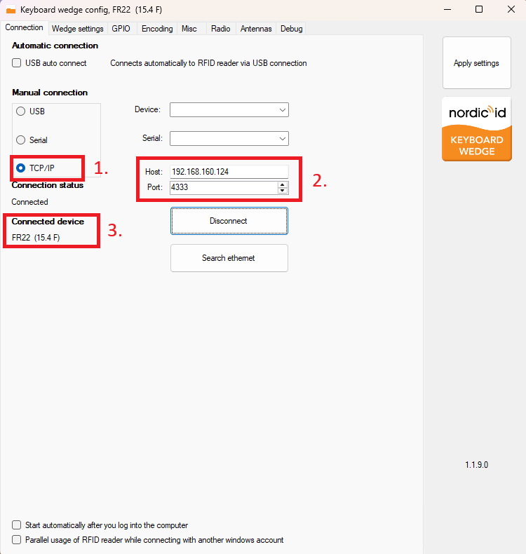 • Enter correct port. Default for fixed reader is 4333 and for handheld 6734