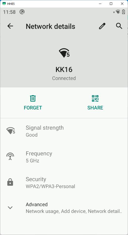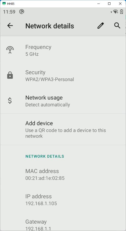 Ensure that your HH8x is connected to the WiFi network. Go to HH8x's WiFi settings, and select the connected WiFi network. Please open it and expand the Advanced section to get an IP address (in my case, it's 192.168.1.105):