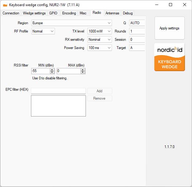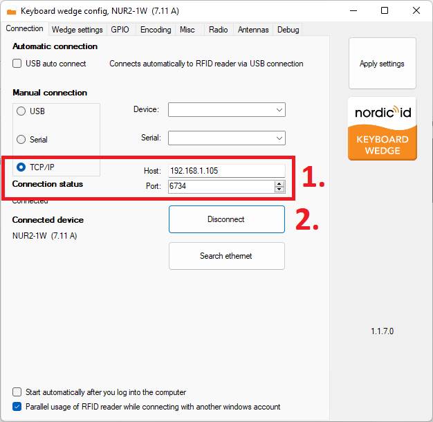 Note: To save the configuration, please run NurWedge.exe as an administrator from