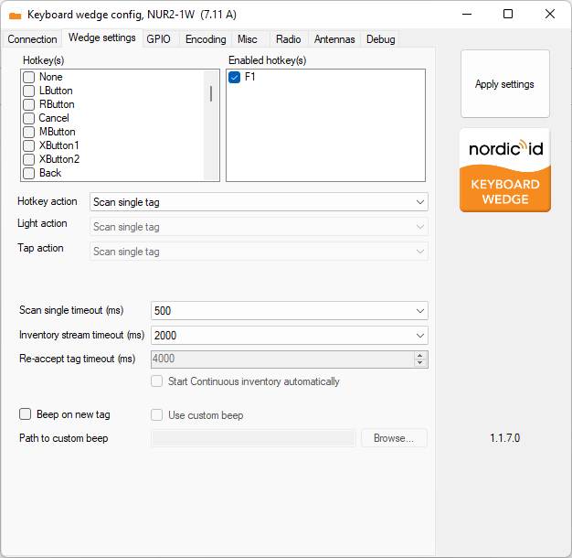 Note: To apply and save the setting, run NurWedge.exe as an administrator from