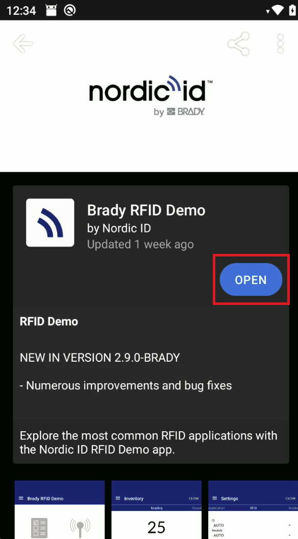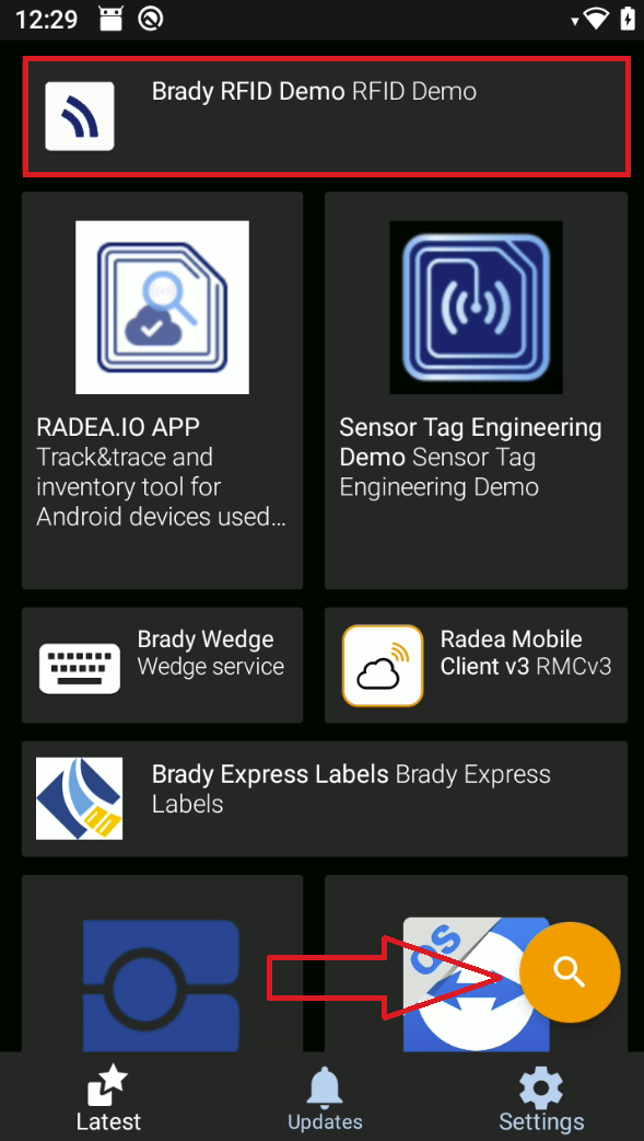 Refresh the page by swiping your finger from top to bottom or click on the magnifying glass and search for Brady RFID Demo